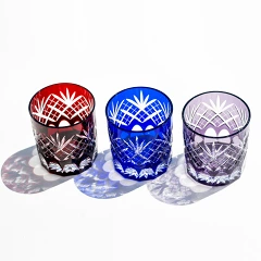 江戸切子 オールドグラス 【硝子工房 彩鳳 直営店】 剣矢来重文様 ルリ/アカ/ムラサキ 単品/ペア 箱入り ※名入れ可能